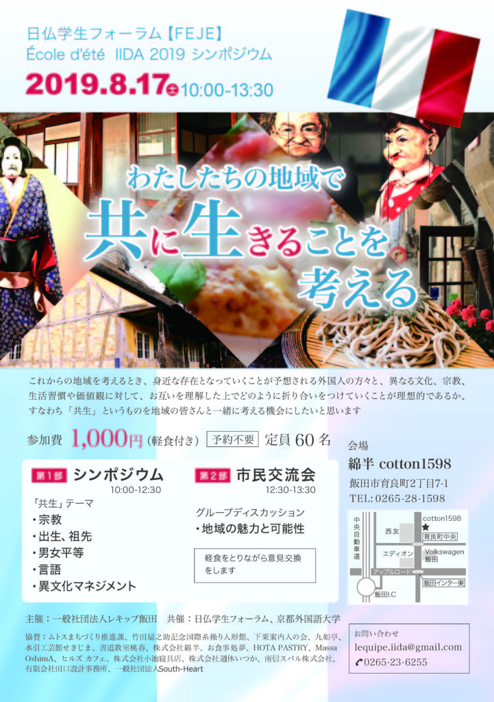 日仏学生フォーラム(Forum Franco-Japonais des Etudiants / FFJE)の学生の皆さんが、ここ飯田市にホームステイをしながら4日間の日程で様々な体験を通して文化交流を図って参ります。