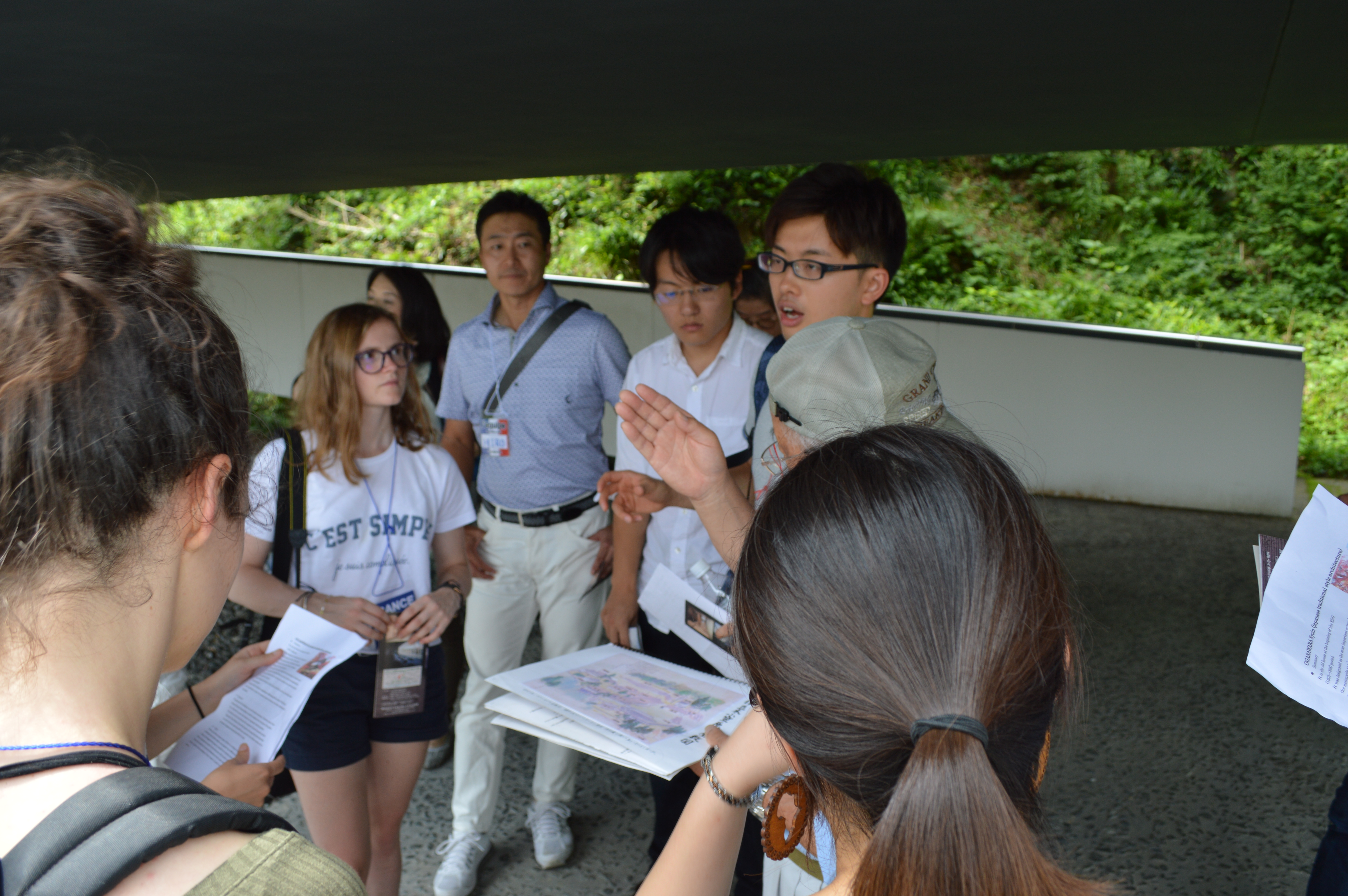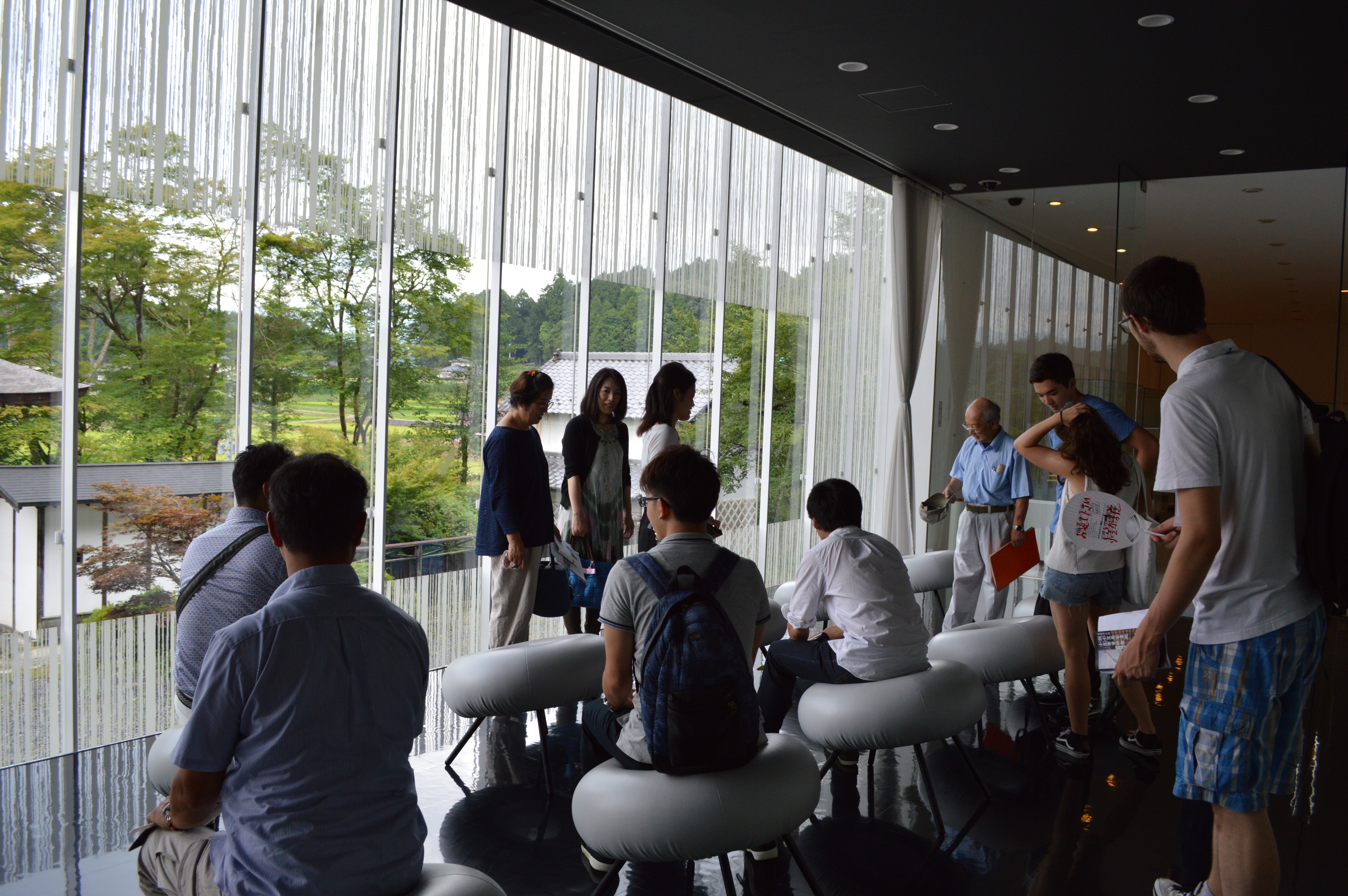 学生の皆さんは、400年前の建物である屋敷の床下のかけ造りから見学し、書院玄関から座敷、廊下を巡り、木肌に触れたり、障子からの眺めを見て古い時代を静かに鑑賞していました。完全な木と紙と土でできた建物、それが今に残っていることに驚いていました。また資料館はモダン建築で、フランスの新ルーブル美術館の建築家であることに親近感を持ったと思います。400年隔てた建物の対比は稀有な経験だったようです。事前学習の資料が充実していれば、もっと良かったかと感じました。