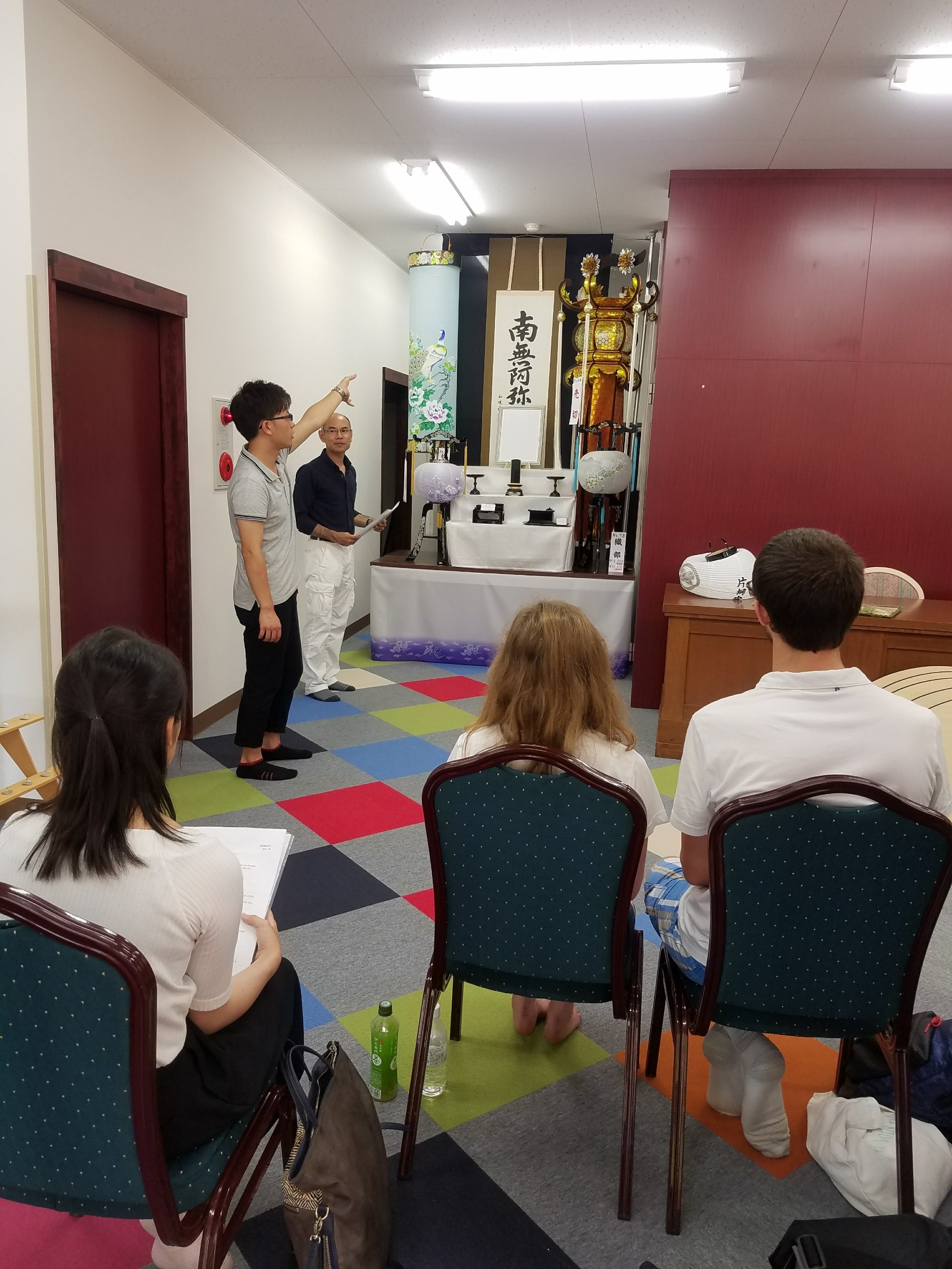 お盆月の8月に来られたこともあり、このテーマについての時間をもうけましたが、宗教の話からさらに地域文化に踏み込んだ話であったため、どの程度理解されたのか、講師として手応えを感じることが難しかったようです。ただし、学生のアンケート回答では、関心を持ってもらえた様子もあり、何らかの印象は残ったのでしょう。