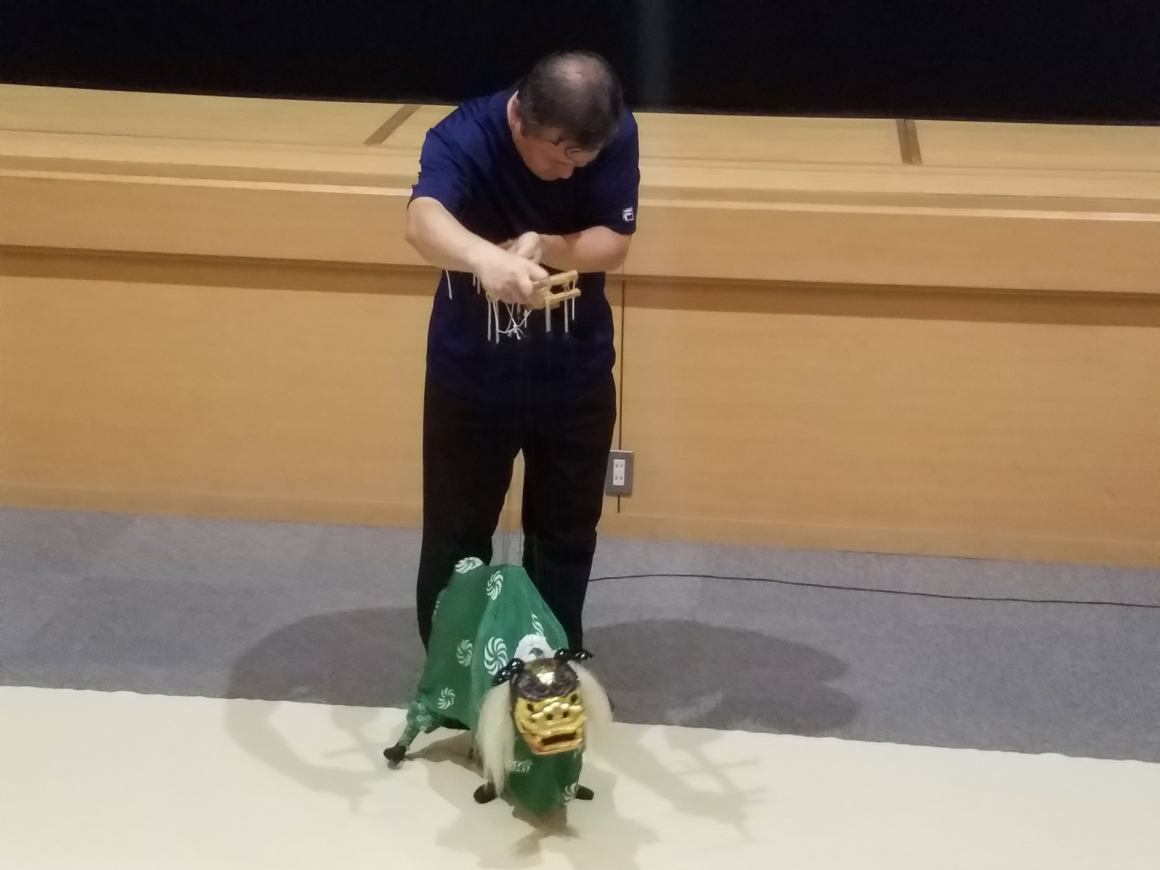 操作をする水上氏の匠な動きや腕捌きなども見るべきでしたが、あまりに生き生きと人形が動くので会場内の全員が人形に注視していました。浄瑠璃に登場する人物や、獅子舞などのキャラクターの動きが実際のそれに見えるほどだったので、人形劇で飯田市の様々なことを表現し紹介できたら相対的に認知が上がるのではないかと考えましたが、その後の解説でこの糸操り人形を作ることは大変難しく担い手が枯渇しかけていると聞き残念に思いました。
